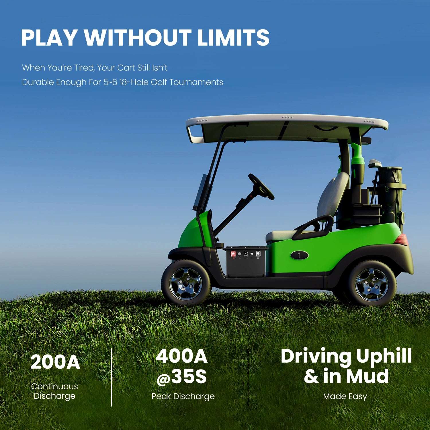 Equipped with a 200A BMS, our carts safeguard against overcharge, over-discharge, overcurrent, short circuit, and temperature issues—keeping your game safe and uninterrupted.
