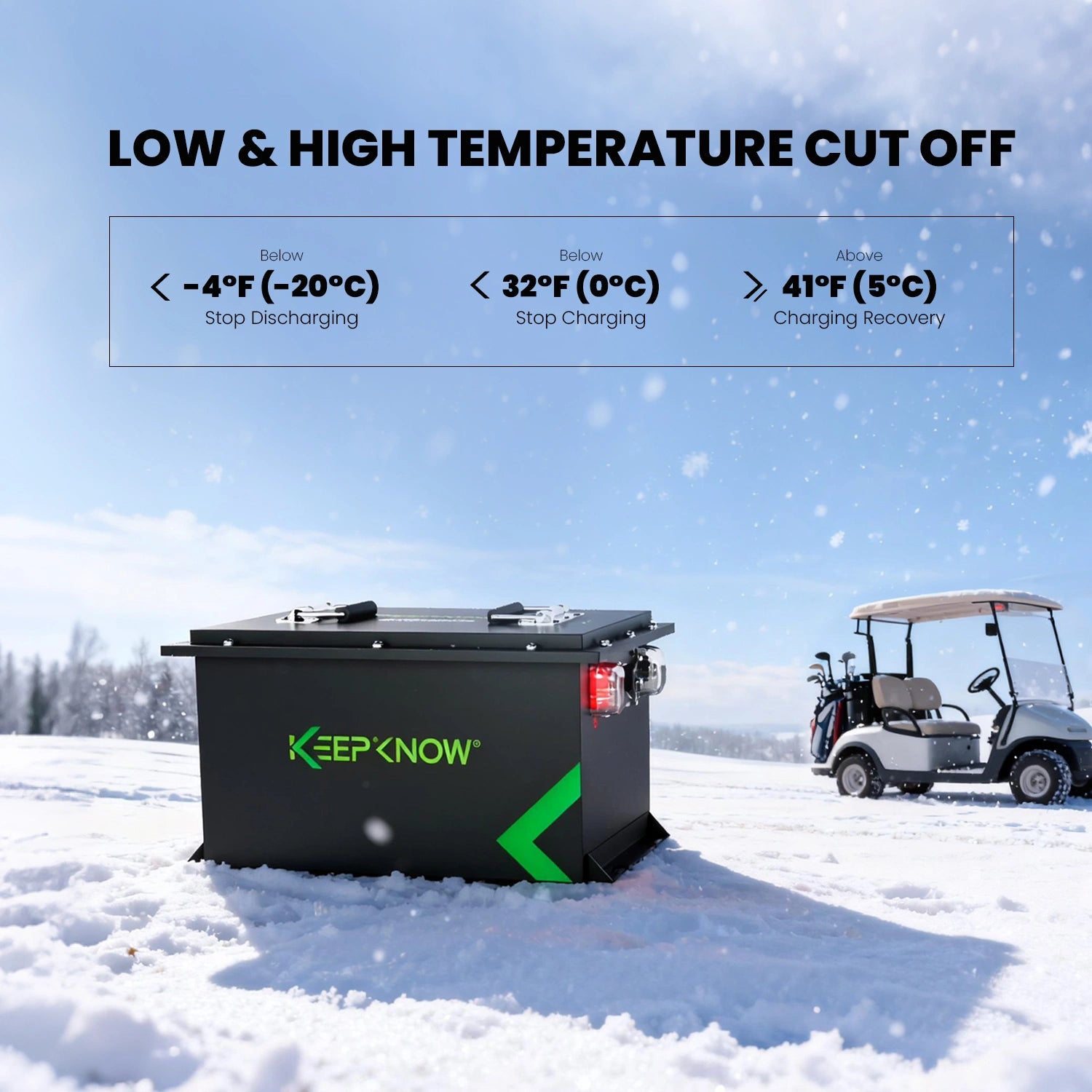 From the first swing to the last hole, KeepKnow lithium batteries keep your golf cart in motion, durable enough for 5–6 full 18-hole tournaments.