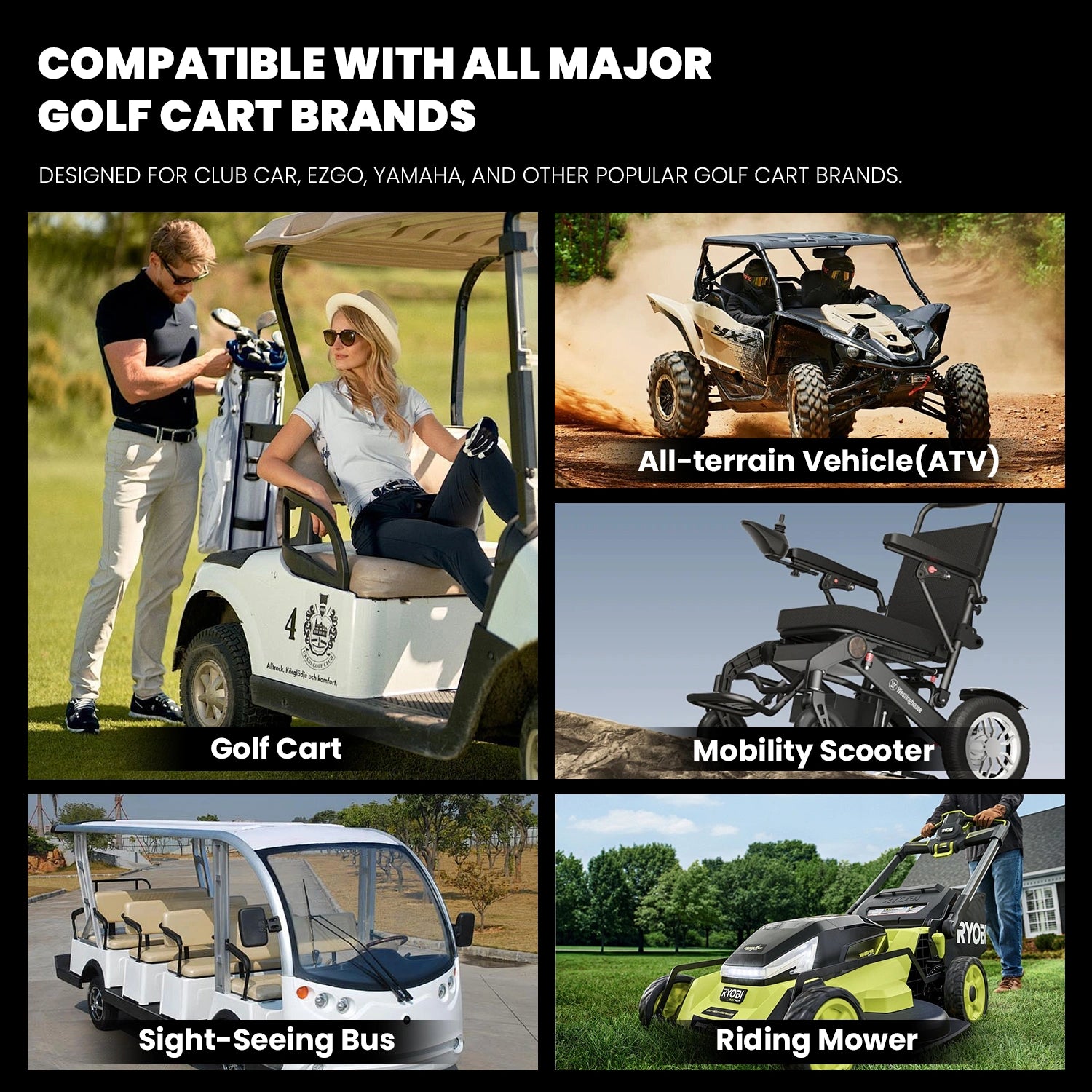 Designed to work seamlessly with Club Car, EZGO, Yamaha, and other popular golf cart brands. Upgrade your battery without worrying about compatibility.