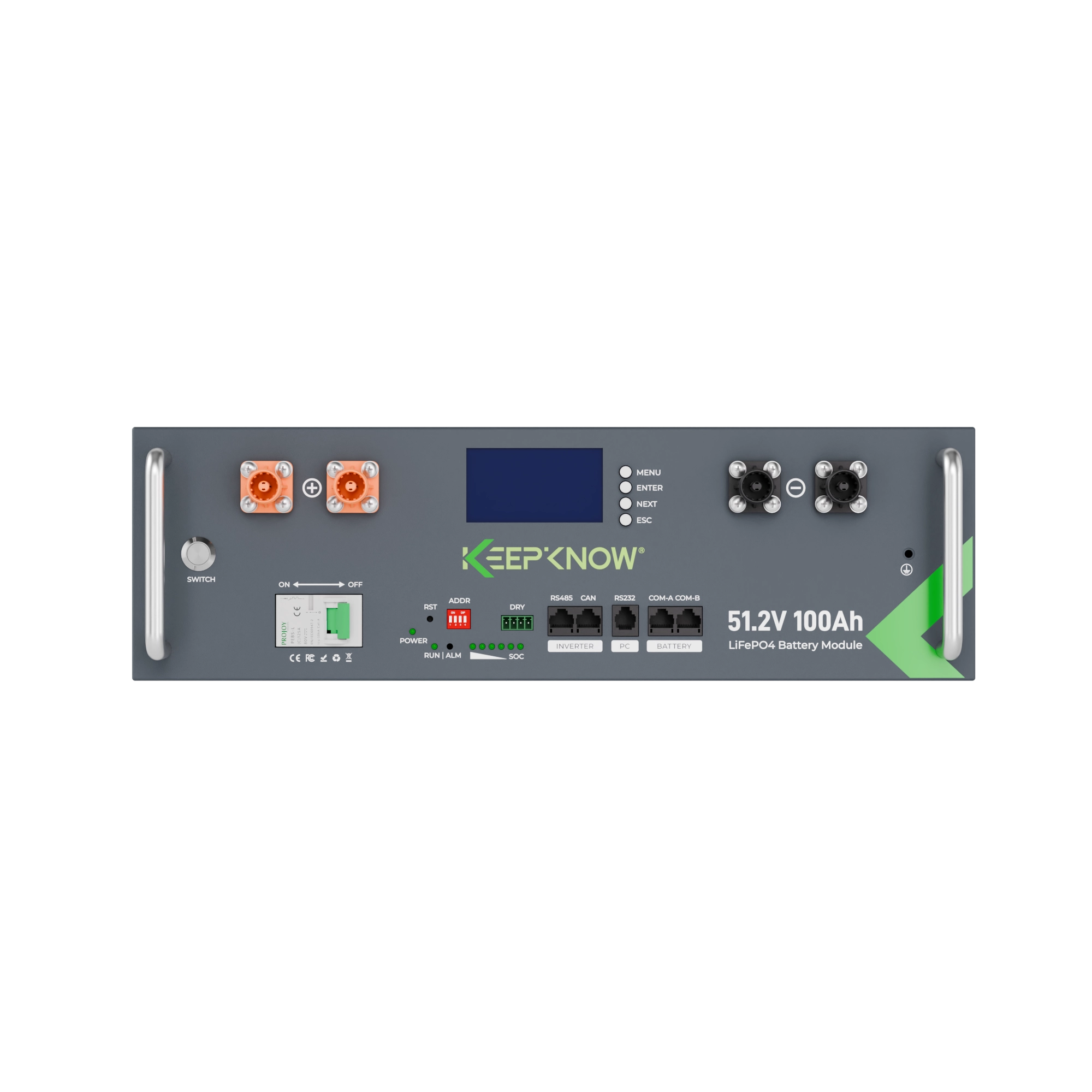 KeepKnow delivers safer, smarter, and more efficient energy storage. Featuring RS485/CAN/RS232 communication, Bluetooth + Wi-Fi app control, LCD display, stackable 3U rack design, DC breaker, and intelligent fire suppression for ultimate reliability.
